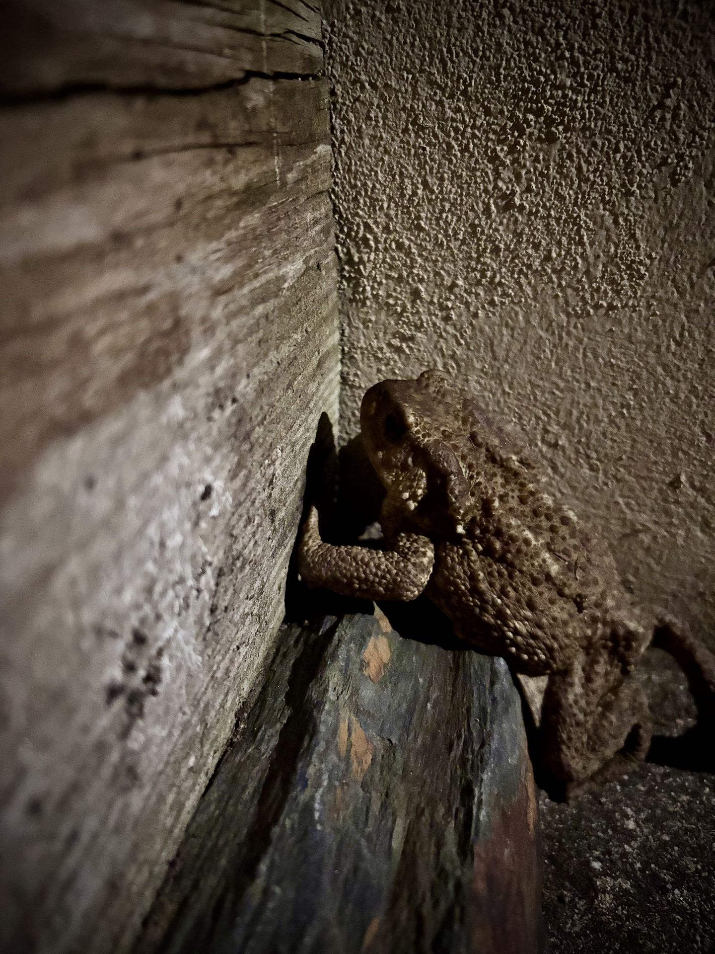 Hier soir, en faisant le tout de la cave avant une nuit de sommeil bien méritée, une belle surprise m’attendait devant la porte : un crapaud commun 🐸