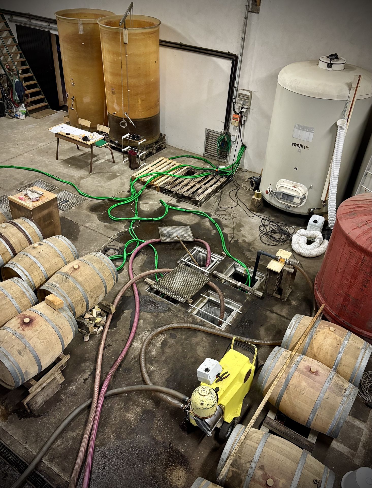 🔹 Mise en place de la cuverie pour accueillir les rouges (les raisins hein, pas les communistes… 😏).