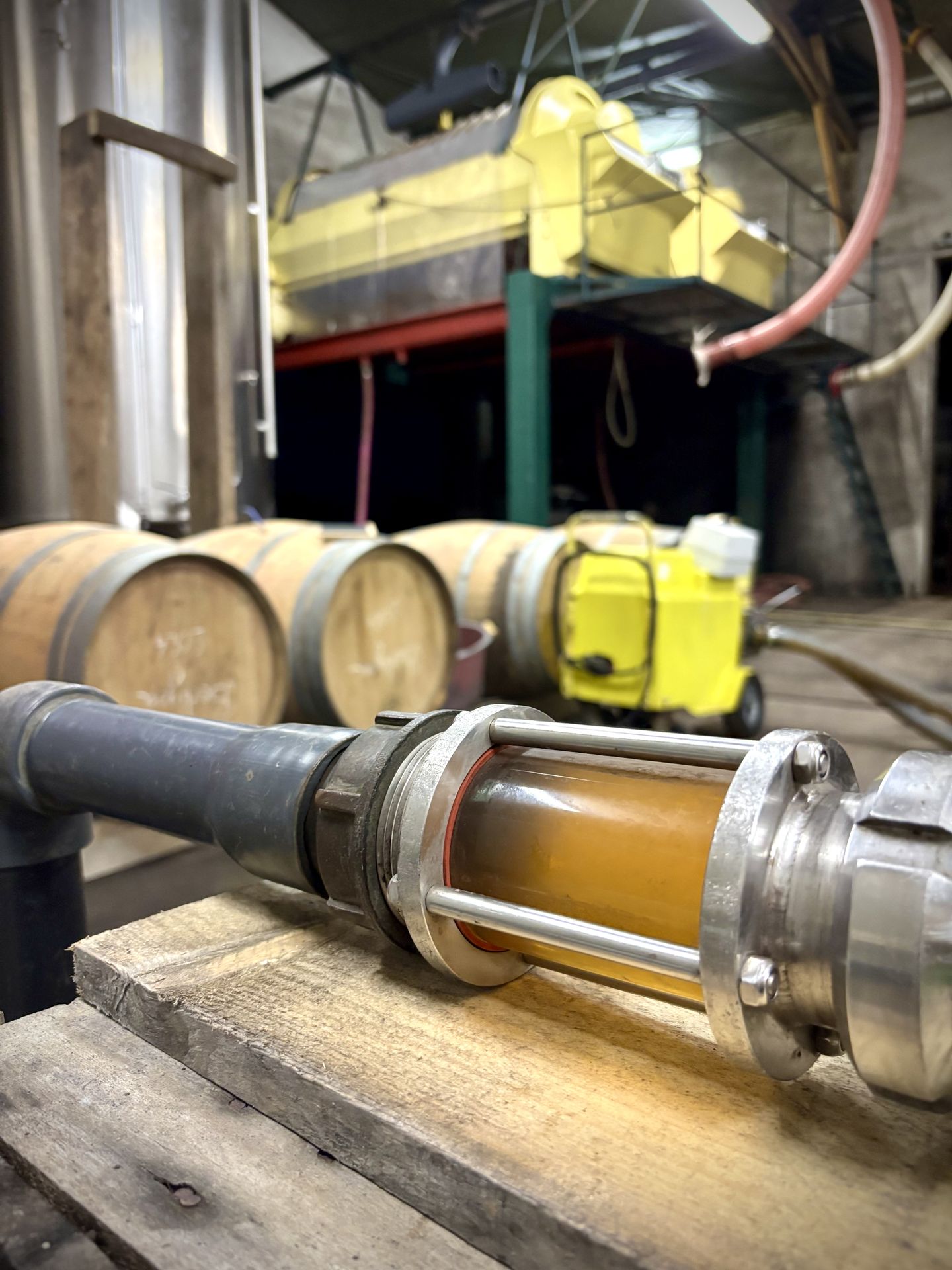 4️⃣ Arrive alors le débourbage : on sépare le jus clair des « bourbes » restées au fond de cuve.